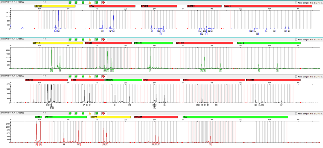 所有案件提取后的核酸都必須經過PCR擴增進入后續3130xl、3500xl進行檢測分析,給出CODIS STR位點,對犯罪嫌疑人機型基因庫比對,鎖定犯罪嫌疑人。