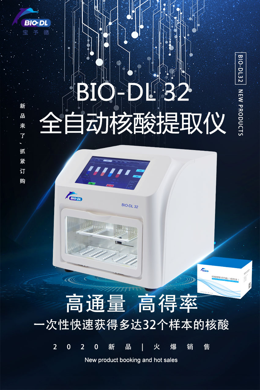 BIO-DL32全自動(dòng)核酸提取儀,是多年核酸提取經(jīng)驗(yàn)的結(jié)晶,能夠助您一次性快速獲得多達(dá)32個(gè)樣本的核酸,并且磁珠回收率高,程序可自由設(shè)置,加上推薦使用的BIO-DL核酸提取試劑盒更能將整個(gè)提取時(shí)間縮短至15min!