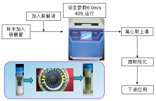 樣本加入研磨管——加入裂解液——設定轉速和溫度和時間等參數(shù)——運行——離心取上清——游下游實驗及應用,只需幾分鐘即可完成24個樣本的前處理。徹底將實驗人員從繁雜危險的液氮研磨中解放出來,同時,Easy Extract生物樣品研磨儀無需液氮或干冰,通過自帶的制冷系統(tǒng),使在研磨過程中樣品保持低溫狀態(tài),更大的避免了生物大分子活性物質(zhì)的降解。